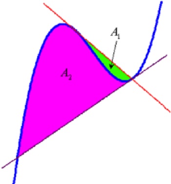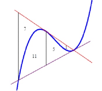 Even harder to believe is this: Draw a tangent line anywhere on a cubic. This tangent will intersect the cubic at a second point and the line and the cubic will define a region whose area is A1. From the second point draw a tangent what intersects the cubic at a third point and defines a region whose area is A2. The ratio of the areas A2/A1 = 16. I have no idea why this should be so, but it is.