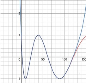 I wish to thank Louis A. Talman, Ph.D,,Emeritus Professor of Mathematics Metropolitan State University of Denver for helping me understand this function better and correcting some of my early ideas. He is the one who Developed the piecewise defined series above. An explanation of the reasoning and a longer discussion of this series can be found in this note “On .” click here. In that note he shows that the Maclaurin series R(x) approximates this piecewise defined function. The two pieces form a function that is continuous and differentiable everywhere including at x = 0. (The pieces join smoothly the point (0, 1).