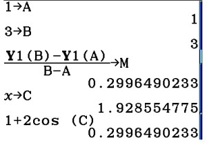 - Choose two values, a and b, in the domain of your function. Save (store) these on your calculator as a and b.