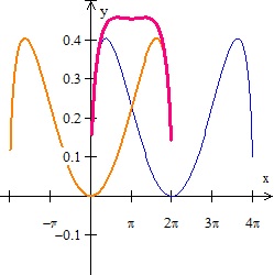 This is the same as the expression we used in part a. and can be handled the same way, except that here \displaystyle \frac{d{{r}_{1}}}{dx}=+\frac{1}{2\pi }. The computation and result will be the same. The result will be the same. The maximum occurs at